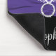 Esta vista elegante mousepad roxo, branco, e preto do damasco tem um broche de harmonização da fita e do cristal do falso. Personalize-a com seu próprio nome, monograma, ou o outro texto.