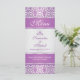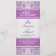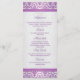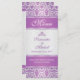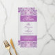 Cor damasco roxa em um cartão Rack do Menu Casamento com gradiente prateado.