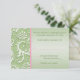 Este cartão de resposta de damasco floral em verde suave salgueira e cor-de-rosa com aparência de relevo falso combina com o convite de casamento mostrado abaixo. Todo o texto é personalizável. O papel também é personalizável. Se você precisar de outros itens com este design, envie um e-mail para niteowlstudio@gmail.com. Os itens correspondentes existentes são mostrados abaixo.