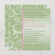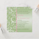 Este falso verde de sábio suave no convite de casamento tema damasco gravado em papel de reciclado quente tem sotaque de cor-de-rosa suave. É mostrado aqui personalizado como convite para o casamento, mas pode ser facilmente usado para muitas outras comemorações, como um aniversário especial, aniversário ou formatura. O texto é personalizável. O papel também é personalizável. Se você precisar de outros itens neste design, como Cartões salve a data, programas de casamento, cartões com fotos, cartões de mesa, cartões de recepção, álbum de casamento, etc., envie seu pedido por e-mail para niteowlstudio@gmail.com. Os itens correspondentes existentes são mostrados abaixo.
