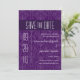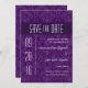 Um belo deco de arte inspirou cor damasco violeta serve como um adorável pano de fundo para este anúncio "Salvar a Data". A mensagem principal se destaca em um painel roxo profundo no topo. Adicione a data do evento grande à esquerda e todas as informações abaixo. Disponível em cores alternativas com produtos correspondentes. com.