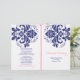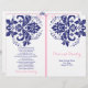 Elegante damask motif marinho azul, cerimônia de casamento rosa dobrada e programa de festas. Um design de casamento moderno, mas clássico, com um talento retrô. Um delicado design de casamento com vintage sente-o, perfeito para um casamento de primavera ou verão contemporâneo ou tradicional. Você terá que dobrá-lo no centro. Escolha apenas este tipo de valor de papel à medida que ele se dobra bem.