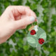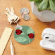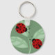 A cadeia de teclas de botões básicos personalizados tem duas joias bonitas em folhas com um fundo verde.