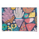 A imagem é um padrão de abstrato vibrante e caprichoso contra um fundo azul escuro. Ele apresenta uma mistura divertida de formas orgânicas parecidas com flores, corais e folhas, ao lado de formas geométricas como círculos, triângulos e listras. Esses elementos são renderizados em uma paleta colorida e ousada, com tons de rosa, laranja, amarelo, verde e azul dominando a composição. As texturas são diversas, desde lisas e planas a padronizadas e texturizadas, acrescentando profundidade e interesse visual. O efeito geral é vivo, enérgico e sugestivo de uma estética lúdica e imaginativa.