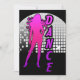 Dançarino de Bola Disco. Texto diz: Dança. Gráfico mostra uma senhora de cabelo comprido. Escolha seu estilo, cor e tamanho. Personalize-o: com muitos itens de armazenamento, você pode adicionar uma cor de fundo, texto ou trocar imagem com sua própria imagem carregada.
