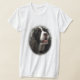 Um t-shirt que caracteriza uma foto original de um fígado e de um Spaniel de Springer inglês branco, com texto na parte traseira; "Dança com Woofs".