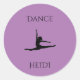 Dance adesivos roxos redondos. Nome personalizado.