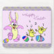 Coelhinho dançante e pintinhos com ovos desejando "Felz pascoa". presente encantador e engraçado para seus filhos