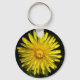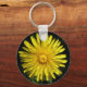 Esta adorável Chaveiro floral mostra uma fotografia de uma flor amarela de dandelion. A foto foi tirada usando macro fotografia, resultando em detalhes tão brilhantes que você pode ver as pétalas individuais e as sombras lançadas nelas.