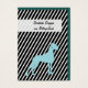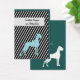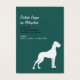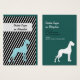Cartões de visita com ilustrações mínimas de Dogue Alemão em azul e branco com fundo listrado em negrito e dois lados impressos. Silhueta fina de Dogue Alemão e texto legível.