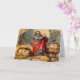 Daniel no cartão de saudação 2 do leão tem Daniel nos leões, na toca, com quatro ou cinco leões querendo comê-lo, ele tem um boné vermelho e um vestido azul no. Esta é uma foto vintage do início de 1900 O texto pode ser mudado para o que você quer que ele seja tão apreciado as cores que você sente que são excelentes para você