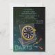 Um considerável, masculino, convite para o entusiasta do dardo. Colorido, em uma maneira subtil, e aperfeiçoe comemorando um aniversário do marco miliário ou para um competiam do dardo. br/>