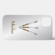 Telefone prateado com três dardos e seu nome ou iniciais