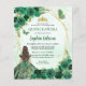 Moderno Emerald Dark Hunter Green Glitter Sparkle Floral Rosa, Princesa Tiara Crown Quinceañera Convite de Aniversário