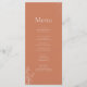 This dark terracotta wedding menu features ivory botanical accents and elegant modern typography. The warm clay background offers a rich, earthy atmosphere perfect for boho, rustic, or modern receptions. Designed to match the terracotta monochrome collection, this menu can be customized with your wedding dinner selections.
