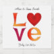 Ilustração clássica que incorpora um motivo quadrado central desenhado à mão, constituído por letras grandes que soletram a palavra LOVE com a letra O substituída por um coração. A inscrição é colorida em vermelho vivo e amarelado. O texto personalizado abaixo do motivo colorido pode ser personalizado. A redação pode ser alterada através da utilização do link "Detalhes" junto à entrada "Personalizar esta Modelo"; o estilo do texto (tamanho, tipo de letra, cor, etc.) pode também ser alterado, premindo o botão "Editar Design", onde o texto adicional pode também ser suprimido, se preferível. Perfeito para personalizar como parte de um obrigado que você oferece para a festa de casamento ou como favores/favores para os convidados de casamento. Arte digital única que incorpora desenho vetorial exclusivo do Design gráfico HJ utilizando a curva de linearidade.