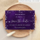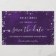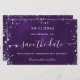 Um cartão de data glamouroso para uma festa de aniversário 50th (ou qualquer idade). Um fundo púrpura incolor. Decorado com pó falso de cinza prateada. O texto: Salvar a Data é gravado com um script de estilo com letra de tendência grande.