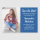 Crie o seu próprio cartão magnético azul (cor editável) personalizado de graduação em fotografia "Salvar a Data". Texto é uma fonte moderna de script de pincel. Use as ferramentas de cor de fundo do Zazzle para editar este cartão.