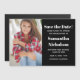 Foto de graduação em preto moderno (cor editável) Salve o cartão magnético Data personalizado com seu nome, nome da escola, ano de graduação e data de graduação.