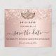 A Save the Date Card for a Quinceañera, 15 da festa de mascarada. Um fundo metálico rosa dourado com aspecto decorado com poeira falsa brilhante e uma máscara de mascarada. Personalize e adicione uma data e nome/idade. O texto: Salvar a Data é gravado com um script de estilo com letra de tendência grande com alternâncias.