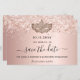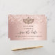 A Save the Date Card for a Quinceañera, 15 da festa de mascarada. Um fundo metálico rosa dourado com aspecto decorado com poeira falsa brilhante e uma máscara de mascarada. Personalize e adicione uma data e nome/idade. O texto: Salvar a Data é gravado com um script de estilo com letra de tendência grande com alternâncias.