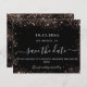 Um moderno e elegante Salve a Data para um casamento. Um fundo preto decorado com rosa faux glitter. Personalize e adicione uma data e nomes. O texto: Salvar a Data é gravado com um script de estilo com letra de tendência grande.