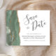 Este elegante orçamento salve a data card apresenta uma cor aquosa verde de sábado, borda agitada, aparada com falso brilho dourado. O texto personalizável combina o script de escrita manual de cinzas de carvão, o copperplate e as fontes itálicas em um fundo branco. O verso apresenta um design verde-sábio e um agate dourado correspondentes.