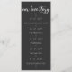 Este programa de casamento é muito elegante e perfeito para o seu casamento. Inclui encontros importantes no verso, e o itinerário do casamento de cheio na frente. Este belo programa juntamente com outros itens nesta coleção apresenta um design preto moderno e simples para o seu casamento personalizado. As feições escuras e modernas deste design não são apenas elegantes, mas eternos! Este impressão é perfeito para pessoas que amam aparência minimalista ou moderna. Para fazer a correspondência de convites e mais, faça o check-out da coleção de cheios. Essa coleção é personalizada exclusivamente para você e seu cônjuge e amarrará todo o seu casamento.
