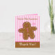 Nota customizável ou cartões do Natal com um homem de pão-de-espécie pequeno adorável com o nariz cor-de-rosa dos doces e o glacé do botão e o branco. Beira listrada do rosa e a branca do fundo e do pão-de-espécie. Aperfeiçoe-o para o obrigado notas! Tag, selos postais, artigos de papelaria coordenados e ímãs do presente também disponíveis! Original de PinkInkArt!