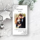 Envie uma nota de obrigados, apreciação e gratidão aos seus amigos e familiares depois de suas núpcias com um Casamento no inverno bonito de Floco de Neve Obrigado Cartão com fotos. Personalize-o com os nomes da noiva, noiva e foto de casamento. Este elegante obrigado de casamento do inverno que você cartões de fotos apresenta um intrincado design de floco de neve com um tom prateado em um fundo branco. Perfeito para um tema clássico de dezembro, janeiro ou casamento no inverno de fevereiro.
