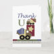 Este design dos cartões de agradecimentos vem com um ajuste do camião basculante sobre uma caixa com uma estrela e um caminhão do cimento na base sobre a listra vermelha, verde e azul sobre as mesmas máscaras da xadrez.