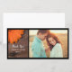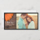 Envie pensamentos de apreciação e gratidão depois do seu casamento casual ao estilo da fazenda, da festa do celeiro noivado ou do chá de panela com a encantadora margarida laranja rustica e o país da madeira do celeiro Obrigado Cartão com fotos. Personalize-o com uma imagem da noiva e noiva, nomes pessoais e data da cerimônia do casamento. Este obrigado de casamento personalizado que você cartões de fotos apresenta uma tênue fotografia floral fechada de pétalas florais de flores de gerber laranja e madeira de celeiro de meteoros castanhos com uma cabeça de prego enferrujada. Inpo perfeito ou ideia para uso depois de um país rural informal mas elegante, celeiro rústico, fazenda ou tema de casamento ocidental.