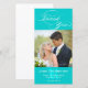 AQUA BLUE INICIAL SCRIPT WEDDING OBRIGADO, CARTÃO COM FOTOS. Design por Elke Clarke© para a Galeria de Monogramas. Um belo roteiro de safra é usado para as palavras "obrigado você". A inicial do monograma pode ser alterada e a fonte e a cor também podem ser alteradas. Se quiser uma fonte de ornamentado menor, você pode escolher entre centenas de fontes no menu de edição. Excelente de casamentos para esquema de cores de azul-aqua e branco, aqua e verde limão ou aqua e laranja porque o inicial do monograma pode ser transformado em cor de sotaque. Para obter ajuda sobre outras cores de fundo ou design, entre em contato com luxuryweddinginvitations@gmail.com.