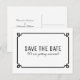 Chic Deco Simples e minimalista Salve o Cartão-postal com uma moderna fronteira decorativa de arte negra. Este cartão postal clássico e elegante é fácil de personalizar com os detalhes do seu casamento. Localize mais opções de personalização clicando em Personalizar.