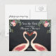 Um encantador e excêntrico cartão postal Flamingo Save the date com efeito de quadro negro no fundo. Personalize a frente e o verso com seus próprios detalhes. Um design profissional e único para impressionar seus convidados. Papelaria de casamento correspondente também disponível.
