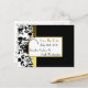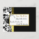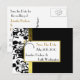 Uma maneira bonita e econômica de enviar anúncios de Salve a Data, com estes elegantes cartões postais pretos, brancos e dourados. Uma elegante flor de damasco, em preto e branco no lado esquerdo, com um lindo acento de borda em tom dourado contra uma cor principal preta jet. Personalize a frente e o verso deste incrível cartão postal de Salve a Data com as informações do seu casamento para uma maneira rápida e fácil de anunciar seus próximos núpcias.
