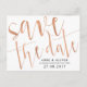 De Anúncio Cartão Postal Rose Gold para Salvar a Data Rústico