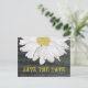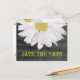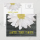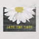 Um cartão postal simples, mas elegante para salvar a data. A frente apresenta um fundo de madeira de celeiro com meia margarida no topo. O texto amarelo diz "Salve a Data". Personalize o lado oposto com o nome da noiva e do noivo, data e quaisquer outros detalhes. Uma margarida acima do texto e uma abaixo. Procure itens correspondentes na categoria "Loja de Casamentos" da The Pink Schoolhouse Store.