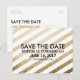 Personalize este lindo e simples cartão postal moderno para salvar a data de aniversário com texto preto sobre listras diagonais de brilho dourado falso. Altere todas as informações. O convite de festa de aniversário correspondente pode ser encontrado no link abaixo: