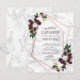 Moderno e sofisticado, este convite de casamento em cartão-postal apresenta um desenho geométrico em cobre falso decorado com belos florais em aquarela e folhagens de eucalipto em uma textura de mármore branco falso, nas cores burgundy ameixa marsala e branco. Os nomes do casal e alguns detalhes do casamento estão em um burgundy rico correspondente, e o verso do cartão-postal apresenta a elegante textura de mármore branco e cinza. Muito obrigada por apoiar nosso pequeno negócio, apreciamos muito!