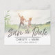 Escolha a melhor foto do seu ensaio de noivado ou a sua foto favorita dos dois para este save the date perfeito. As palavras save the date são escritas à mão para dar um toque pessoal ao cartão postal. Edite este cartão de save the date de casamento com suas informações e personalize ainda mais as opções de fonte e cor da fonte.