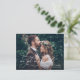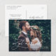 Nossos cartões-postais de fuga para casamento com foto são a maneira perfeita de anunciar seu casamento a amigos e familiares, ao mesmo tempo em que mostram sua foto favorita da fuga. O delicado design de letras à mão adiciona um toque romântico ao layout moderno e bonito do cartão de foto. Feitos de papel cartão de alta qualidade, esses cartões-postais têm um toque luxuoso e serão apreciados por seus entes queridos como uma lembrança de seu dia especial. A opção de personalização de foto permite que você escolha sua foto favorita da fuga e adicione um toque pessoal ao cartão. Com amplo espaço para sua mensagem de amor e gratidão, esses cartões-postais são uma maneira perfeita de compartilhar sua alegria com aqueles mais próximos a você. Se você optar por uma foto clássica em preto e branco ou uma vibrante e colorida, nossos cartões-postais de fuga para casamento com foto são uma maneira elegante e sofisticada de anunciar seu casamento e compartilhar seu dia especial com os outros.
