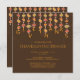 Convite Moderno de Ação de Graças do outono, com cordas de folhas de outono suspensas, com "dar obrigados" em um fundo marrom rico. Na moda, chic e convite exclusivo para a sua festa de Dia de Ação de Graças.