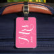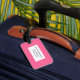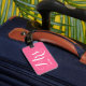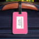 Sua bolsa deve ser fácil de localizar com essa etiqueta de bagagem cor-de-rosa, que pode ser personalizada com informações essenciais de contato.