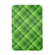 Um tapete de banho de tamanho médio com um belo, vibrante, design de padrão de xadrez verde de árvore.
