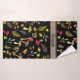 Personalize esta adorável toalha de banho botânica com a sua escolha de nome ou de iniciais. Tem um fundo preto com cogumelos em rosa, laranja e verde. Interpersados são manchas de folhagem em verdes e cinzas. Besouros verdes brilhantes e caracóis laranja dão a esta toalha um tom caprichoso.