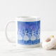 Esta caneca comemorativa do Nutcracker caracteriza a envoltório-em torno do design da dança dos flocos de neve em máscaras bonitas do azul. O ano do desempenho pode ser personalizado editando o texto. Ilustração por Mitzi Sato-Wiuff para o estúdio Miyabi.