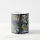 A reprodução bonita da janela de vitral de Nouveau Tiffany da arte do vintage de flores das glicínias está nesta caneca.