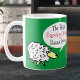 Dar caneca para a melhor Mãe de dança. Cartoon engraçado de uma ovelha falante. A ovelha diz "Melhor Mãe de dança Baaa None".