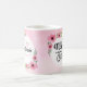 Deixe sua Nana saber o special ela é com este design original da tipografia do roteiro da escova que caracteriza a mensagem, "à melhor Nana no mundo." O design é acentuado com as flores cor-de-rosa bonitas da aguarela no fundo cor-de-rosa borrado. O tipo tem o swash cor-de-rosa e o acento adicional da flor. Para trás da caneca tem flores adicionais com placeholder para o nome da sua Nana. Os acentos podem ser ajustados para caber nossas necessidades.